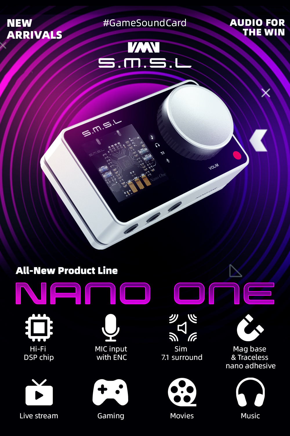 SMSL Nano ONE Game Headset-Optimized External Sound Card