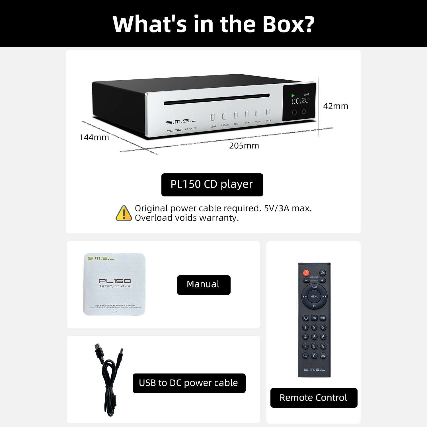SMSL PL150 Audiophile CD Player CS43198 with Headphone Jack